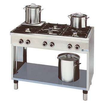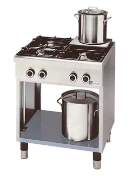 eindbeveiliging. Zeer snelle verhittingstijd d.m.v. 2 vlampijpen per pan.